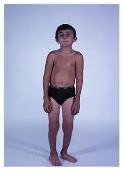 - ↑ Aberfeld, DC, Hinterbuchner, LP, Schneider, M. Myotonia, dwarfism, diffuse bone disease and unusual ocular and facial abnormalities (a new syndrome). „Brain”. 88, s. 313–322, 1965. PMID: 4953364.