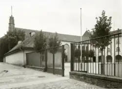 Mury kościoła w lewym skrzydle stały w ruinie aż do roku 1968[7], dopiero wówczas je rozebrano, jako najpewniej niepasujące do nowej socjalistycznej rzeczywistości. Następnie na jego gruzach wzniesiono typowy dla socjalistycznej zabudowy blok mieszkalny, nieprzystający architekturą ani do XVIII-wiecznego skrzydła z krużgankami, ani do Wieży Kleszej. Budynek ten będzie pełnić przez wiele lat funkcję internatu przyszkolnego. Remont szkoły został ostatecznie zakończony w roku 1971 i nadany jej kształt architektoniczny utrzymał się do współczesności[8].