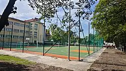 Do terenu szkoły należy boisko, na którym przez wiele stuleci stał budynek semnarium papieskiego, a później seminarium diecezjalnego – słynny Kamienny Dom. Budynek został zniszczony w czasie działań wojennych II wojny światowej. Pozostałości okazałego 4-kondygnacyjnego gmachu rozebrano w 1960 roku[9]. W jego miejscu pozostał pusty, później wyasfaltowany plac, służący jako boisko szkolne. W 2023 szkoła zrealizowała inwestycję pn. Przebudowa/modernizacja istniejącego boiska szkolnego w ramach zadania „modernizacja infrastruktury sportowej” na kwotę 1,2 mln zł[10].