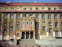 W 1945 roku obiekt został zniszczony w trakcie walk o obronę miasta. W 1951 roku został przeznaczony na szkołę zawodową. W 1958 ukończono odbudowę budynku. Przypominała ona przedwojenny gmach, lecz było kilka zmian np.: uproszczenie konstrukcji dachu, uzyskano nową oś okien, w którą umieszczono nową rzeźbę głowy Adama Mickiewicza. Natomiast trzy głowy znad głównego wejścia przeniesiono i zamontowano nad nieczynnym wejściem na salę gimnastyczną. W ostatnich latach dokonano wiele inwestycji między innymi położono nowy dach, wymieniono częściowo okna, wyremontowano aule, korytarze i sale lekcyjne.