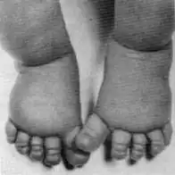- poduszeczkowate obrzęki limfatyczne dłoni i stóp (ang. puffy feet) w okresie noworodkowym i niemowlęcym (22%)[41];