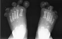 - 1 2 SA Temtamy, MS Aglan. Brachydactyly. „Orphanet Journal of Rare Diseases”. 3:15, 2008. DOI: 10.1186/1750-1172-3-15.