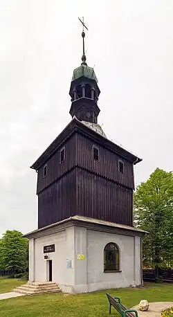 Obok kościoła stoi murowano – drewniana dzwonnica z 1973 roku, kopia dzwonnicy z Niegowici z XVII wieku[6].