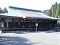 Chram shintō zbudowany około 1060 roku, najstarszy zachowany w Japonii. Honden należy do unikalnych konstrukcji i jest najstarszym przykładem stylu nagare-zukuri, który rozwinął się w okresie Nara (710–794). Pod jednym dachem znajdują się trzy przylegające do siebie jednoprzęsłowe sanktuaria[8]. |
