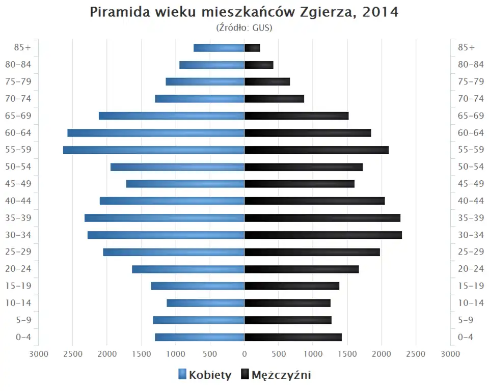 - Piramida wieku mieszkańców Zgierza w 2014 roku[9].