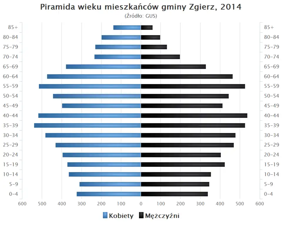 - Piramida wieku mieszkańców gminy Zgierz w 2014 roku[1].