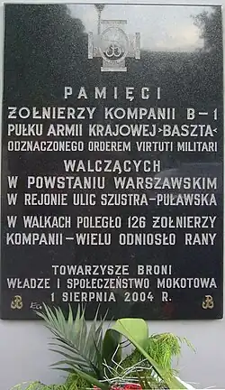 - ↑ Bronisław Wojciechowski, W powstaniu na Mokotowie, (relacja o tych i innych działaniach kompanii B 3), 1989.