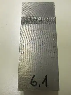 Wskutek gwałtownego zetknięcia się elementów następuje ich zespojenie i przesunięcie, które tworzy połączenie z charakterystyczną pofalowaną powierzchnią zgrzeiny.