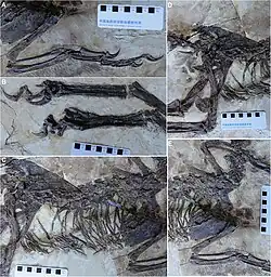 - 1 2 3 4 5 6 7 8 9 10 11 12 13 14 15 16 17 18 Junchang Lü & Stephen L. Brusatte. A large, short-armed, winged dromaeosaurid (Dinosauria: Theropoda) from the Early Cretaceous of China and its implications for feather evolution. „Scientific Reports”. 5, s. Article number 11775, 2015. DOI: 10.1038/srep11775.