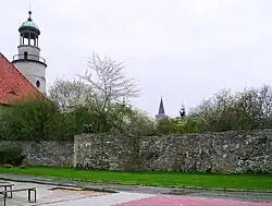 - ratusz miejski z XIX wieku z wcześniejszą wieżą z wieku XVI. Fundamenty wieży pochodzą z pierwszego ratusza z epoki średniowiecza. Sama wieża jest renesansowa i jest pozostałością po drugim tzw. „starym ratuszu” zbudowanym w drugiej połowie XVI wieku. Gmach budynku przebudowano w 1890 r. w stylu eklektycznym, neogotyckim z neorenesansowym, nowy ratusz