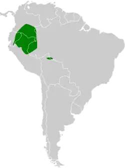 - S. a. murallae – w południowo-wschodniej Kolumbii, wschodnim Ekwadorze, północno-wschodnim Peru i sąsiadującymi z nimi zachodnimi obrzeżami Brazylii[12]. Odnotowano też stwierdzenie w północno-wschodniej Boliwii (w północnej części departamentu Beni)[10].
