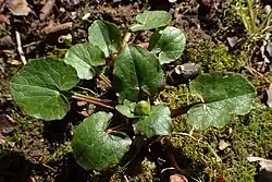 - Skrętoległe[13], ogonkowe, z pochwiastą nasadą[6]. Dwa do czterech liści odziomkowych o długich ogonkach tworzy rozetę przyziemną. Liście łodygowe mają krótsze ogonki, poza tym są podobne, choć te wyższe zwykle są mniejsze i silniej wcinane[6]. U podgatunku typowego, występującego w Europie Środkowej, po kwitnieniu rozwijają się w kątach dolnych liści łodygowych[6] jajowate, białawe bulwki[13][14]. Blaszka liściowa jest mięsista, naga, błyszcząca i ciemnozielona, ale też często z jaśniejszymi i ciemniejszymi plamami. Ma zmienny kształt i wielkość – osiąga od 5 do 50 mm długości i szerokości[6]. Zwykle ma kształt okrągło- lub jajowato-sercowaty, brzeg jest cały, karbowany lub wcinany[13][6].