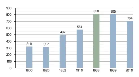 Liczba ludności w ostatnich 3 wiekach[16][17][18][19][20]: