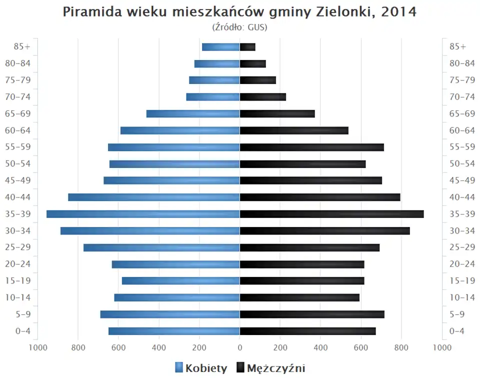 - Piramida wieku mieszkańców gminy Zielonki w 2014 roku[5].