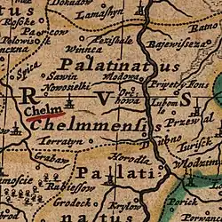 - ↑ W. Ćwik, J. Reder, Rozwój administracyjno-terytorialny Ziemi Chełmskiej, [w:] Ziemia Chełmska, Lublin 1961, s. 17: „Takie stanowisko ziemi było, wydaje się, jedyne tego rodzaju w państwie, gdyż Ziemia Chełmska właściwie poza nazwą i brakiem wojewody niczym się od województwa nie różniła”. Zob. też: Dzieje Lubelszczyzny, t. 1, red. T. Mencel, Warszawa 1974, s. 224: „Formalnie stanowiła ona część województwa ruskiego, w gruncie rzeczy jednak posiadała daleko idącą autonomię, którą wyrażały używane nieraz urzędowe określenia: terra et palatinatus Chelmensis, ziemia i województwo chełmskie”.