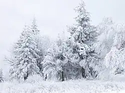 Większość roślin zimuje w formie nasion lub podziemnych kłączy, cebul i bulw. Na powierzchni pozostają tylko bezlistne krzewy i drzewa liściaste oraz zimozielone krzewy i drzewa iglaste. Śnieg pokrywający drzewa chroni je przed przemarzaniem, a szadź jest zjawiskiem występującym tylko w zimie, gdy jest mgła i mróz[2].