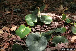 - W przypadku bylin sercowate, zebrane w rozetę, z charakterystycznymi nerwami bocznymi wygiętymi do tyłu. W przypadku krzewinek liście są sztywne, drobne i błyszczące[5]. Liście bez przylistków, ogonkowe lub siedzące[6]