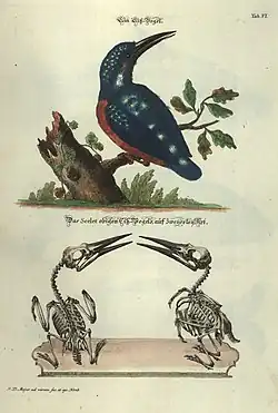 Zimorodek, miedzioryt kolorowany (Johann Daniel Meyer, 1748)[26]