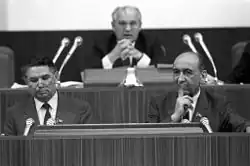 Przewodniczący Prezydium Rady Najwyższej Michaił Gorbaczow, Aleksandr Suchariew i Telman Gdlan na I Zjeździe Deputowanych Ludowych ZSRR