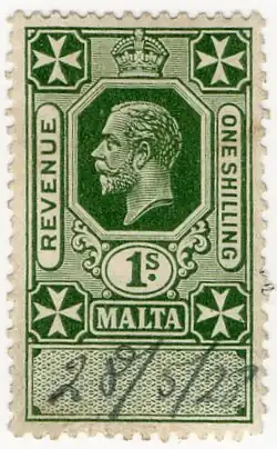Znaczki skarbowe Malty zostały po raz pierwszy wyemitowane w 1899, kiedy wyspy były kolonią brytyjską. Od tego roku do 1912 wszystkie kwestie skarbowe były ofrankowane znaczkami pocztowymi z nadrukiem, wykonanym albo lokalnie, albo przez De La Rue w Londynie. W 1913 znaczki pocztowe również stały się ważne do użytku fiskalnego, więc nie wydano żadnych nowych znaczków fiskalnych aż do lat 1926–1930, kiedy to została wydana seria znaczków key type przedstawiających króla Jerzego V. Były one wykorzystywane do opłacania dochodów z ceł ogólnych lub z dodatkowymi napisami wskazującymi szczególne przeznaczenie: wnioski, umowy, rejestry lub akcje i udziały. Jedynymi innymi znaczkami skarbowymi po tej serii były 1-funtowe znaczki przedstawiające Jerzego VI i Elżbietę II. Znaczki pocztowe pozostawały ważne do użytku fiskalnego co najmniej do lat 80. XX wieku.