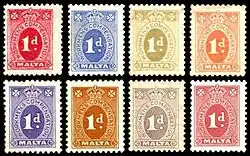 - ↑ Stanley Gibbons Stamp Catalogue: Commonwealth and British Empire Stamps 1840–1970. Wyd. 112. London: Stanley Gibbons, 2010, s. 399–400. ISBN 978-0852597316. (ang.).