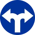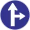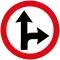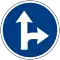 C-8: nakaz jazdy w prawo lub w lewo | Znak nakazuje kierującemu jazdę w prawo lub w lewo. Stosowany, gdy zabroniona jest jazda prosto. |
