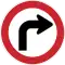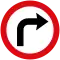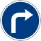 C-2: nakaz jazdy w prawo za znakiem | Znak nakazuje kierującemu skręt w prawo za znakiem. Znak ten umieszczony jest obok jezdni, której dotyczy i obowiązuje na najbliższym skrzyżowaniu lub w miejscu, gdzie występuje możliwość zmiany kierunku jazdy. |
