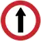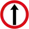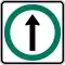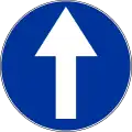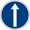 C-5: nakaz jazdy prosto | Znak nakazuje kierującemu jazdę prosto. Znak obowiązuje na najbliższym skrzyżowaniu lub w miejscu, gdzie występuje możliwość zmiany kierunku jazdy. Często stosowany jest poza skrzyżowaniami na drogach o dużym natężeniu ruchu w celu wyeliminowania skręcania (szczególnie w lewo) pojazdów do obiektów przydrożnych. |