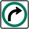 C-12: ruch okrężny (rondo) | Znak nakazuje kierującemu jazdę dookoła wyspy lub placu w kierunku wskazanym na znaku (skrzyżowanie o ruchu okrężnym). Znak C-12 najczęściej występuje łącznie ze znakiem A-7 „ustąp pierwszeństwa”, co oznacza pierwszeństwo kierującego znajdującego się na skrzyżowaniu przed kierującym wjeżdżającym na to skrzyżowanie. W przypadku znaku C-12 występującego samodzielnie, pojazd znajdujący się na skrzyżowaniu ustępuje pierwszeństwa pojazdowi na wjeżdżającemu (zgodnie z zasadą prawej ręki). |