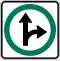 C-7: nakaz jazdy prosto lub w lewo | Znak nakazuje kierującemu jazdę prosto lub w lewo. Stosowany na skrzyżowaniach o więcej niż czterech wlotach, gdy nie można zastosować znaku B-22 „zakaz skręcania w prawo”. |