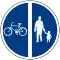 Znak C-13/16 wskazujący ruch pieszych i rowerów na tej samej drodze |