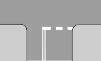 | P-5: linia podwójna przerywana | Linia znajdująca się między skrzyżowaniami po obu stronach pasa ruchu, oznacza pas o zmiennym kierunku ruchu otwieranym i zamykanym sygnałami świetlnymi nadawanymi przez sygnalizator S-4.