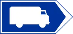 F-13: przejazd tranzytowy | Wskazuje zgodnie ze strzałką kierunek przejazdu tranzytowego pojazdów wskazanych umieszczonym na znaku symbolem pojazdu. | |||||||||||||