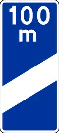 F-14f: tablica wskaźnikowa na drodze ekspresowej umieszczana w odległości 100 m przed pasem wyłączania[1] | Informuje o zbliżaniu się do początku pasa prowadzącego do wyjazdu z drogi ekspresowej (pasa wyłączania) | |||||||||||||