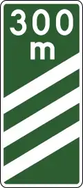 F-14d: tablica wskaźnikowa drodze ekspresowej umieszczana w odległości 300 m przed pasem wyłączania[1] | Informuje o zbliżaniu się do początku pasa prowadzącego do wyjazdu z drogi ekspresowej (pasa wyłączania) | |||||||||||||