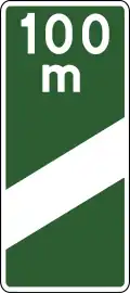 F-14c: tablica wskaźnikowa na autostradzie umieszczana w odległości 100 m przed pasem wyłączania | Informuje o zbliżaniu się do początku pasa prowadzącego do wyjazdu z autostrady (pasa wyłączania). | |||||||||||||