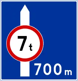 F-5: uprzedzenie o zakazie | Uprzedza o znaku zakazu umieszczonym na drodze w odległości wskazanej na znaku. | |||||||||||||