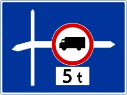 F-20: część drogi (pas ruchu) dla określonych pojazdów | Wskazuje drogę lub jej część przeznaczoną dla pojazdów, których symbol został umieszczony na znaku. Zamiast symbolu pojazdu o dopuszczalnej masie całkowitej do 3,5 t na znaku może być umieszczony symbol pojazdu stosowany na tabliczkach od T-23a do T-23j, odpowiednio do sposobu przeznaczenia drogi lub jej części. | |||||||||||||