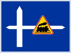 F-6: Znak uprzedzający umieszczany przed skrzyżowaniem | Uprzedza o wskazanym na nim odpowiednim znakiem niebezpieczeństwie lub zakazie występującym za skrzyżowaniem na wskazanej drodze.