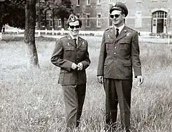 ![]() Dowódca 56 pś ppłk. pil. Bolesław Andrychowski odznacza mjr pil. Zofię Dziewiszek- Andrychowską | |