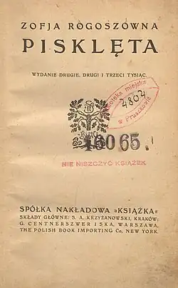 - ↑ Zofia Rogoszówna, Pisklęta: nowele, wyd. 1910. [online], polona.pl [dostęp 2018-06-28].
