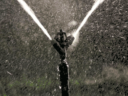 W celu nawodnienia terenów zielonych stosuje się linie kroplujące, deszczownie oraz zraszacze: