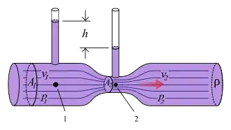 Z prawa Bernoulliego oraz warunku ciągłości przepływu wynika, że różnica kwadratów szybkości płynu przed zwężką i na niej jest wprost proporcjonalna do różnicy ciśnień przed zwężką i na niej. Innymi słowy, w miejscu mniejszego przekroju rurki ciśnienie jest mniejsze, a spadek zależy od szybkości przepływu płynu.