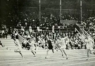 - ↑ Athletics at the 1912 Stockholm Summer Games: Men's 100 metres Final. Sports-Reference.com. [dostęp 2013-04-01]. [zarchiwizowane z tego adresu (2011-09-04)]. (ang.).