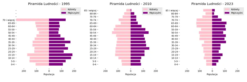 - ↑ P2577 Ludność w wieku przedprodukcyjnym (14 lat i mniej), produkcyjnym i poprodukcyjnym wg płci. [w:] Bank Danych Lokalnych [on-line]. Główny Urząd Statystyczny. [dostęp 2025-05-02]. (pol.).