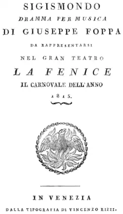 - ↑ wykaz numerów muzycznych i podział na sceny wg Paolo Pinamonti: Sigismondi (= Edizione critica delle opere di Gioacchino Rossini. Sezione prima – opera teatrali. Volume 14). Fondazione Rossini, Pesaro 2010.