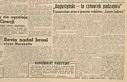 - ↑ Redaktor Gazety Ludowej stanie przed sądem. „Trybuna Robotnicza”, s. 2, nr 211 z 3 sierpnia 1947.