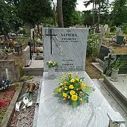- ↑ Daty życia Zygmunta Sapiehy na stronie Cmentarza św. Rodziny we Wrocławiu-Sępolnie. [on-line] [dostęp 2020-12-07].