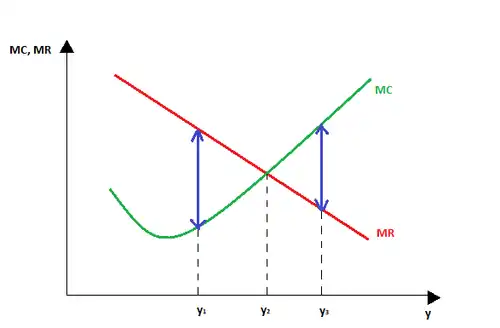 Przykładowo na wykresie kiedy to zysk krańcowy jest dodatni, przy wynosi zero, a przy jest mniejszy od zera.